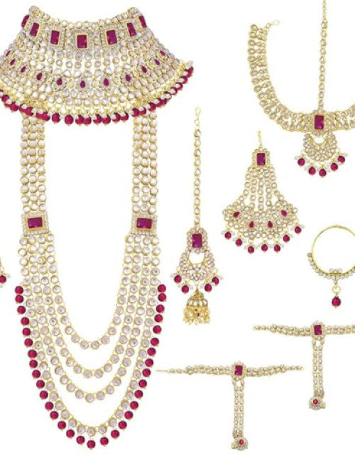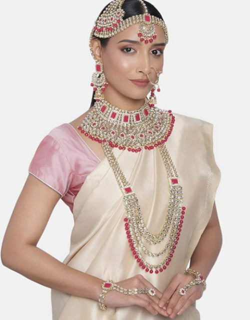 Ethnic Indian Traditional Gold Plated Kundan Dulhan Bridal Jewellery Set Choker Earrings Maang Tikka Hathphool for Women Girls