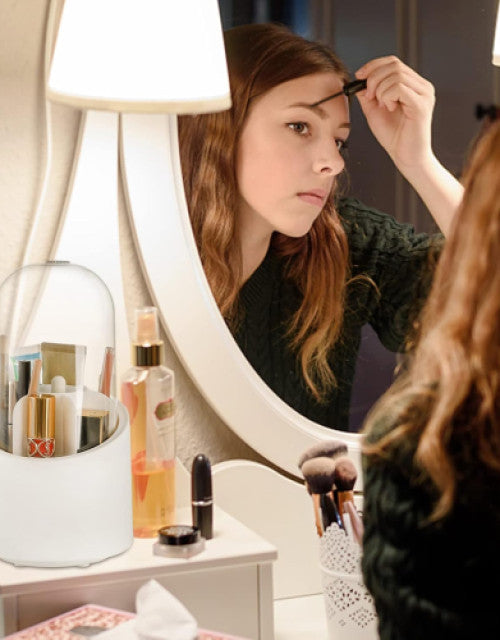 Makeup Brush Holder Organizer with Lid, Rotating Dustproof Make Up Brushes Container